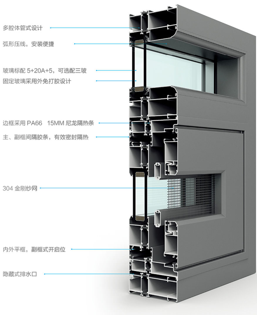 金剛紗網(wǎng)一體設計,斷橋可做雙色;